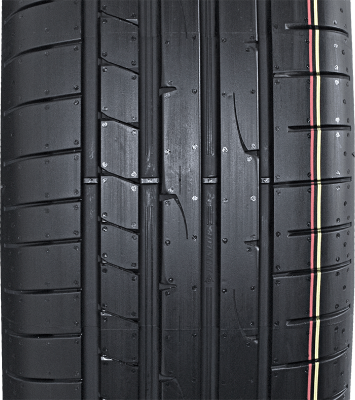 Les avantages de la bande de roulement originale de Dunlop incluent l’aspect polygonalqui ajoute jusqu'à dix rayons différents à la construction du pneu. La pression est uniformément répartie, en offrant des manœuvres plus précises, des virages et des accélérations en douceur. La géométrie spéciale des différents éléments optimise la rigidité des blocs, en offrant une distance de freinage plus courte, en particulier à des vitesses très élevées.