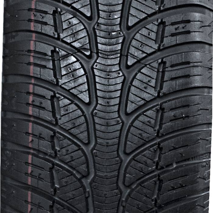 Grâce à un mélange de gomme élastique, la surface de contact du pneumatique avec la route s'élargit, ce qui influence de manière positive l'adhérence et la sécurité de la conduite. Le mélange adapte ses propriétés à la température, ce qui lui permet de garder son élasticité en hiver et sa rigidité en été, tout en restant résistant à l'abrasion. Le pneumatique se débrouille bien sur sol glissant grâce à des entailles sur les blocs et à un grand nombre de lamelles sur la nervure centrale. De larges rainures périphériques transversales avec des lamelles aident à raccourcir la distance de freinage sur sol sec et mouillé. La conduite avec le Kleber Quadraxer devient précise et confortable grâce aux blocs massifs et rigides de la bande de roulement et à une large nervure centrale. Ces éléments contribuent à maintenir une trajectoire correcte et la communication conducteur-pneumatique se déroule de manière efficace et sans problème. Le modèle est une solution idéale pour les conducteurs qui, en plus de performances équilibrées et l'économie sur tout type de revêtement, cherchent dans les pneumatiques toutes saisons le confort et le plaisir de la conduite.