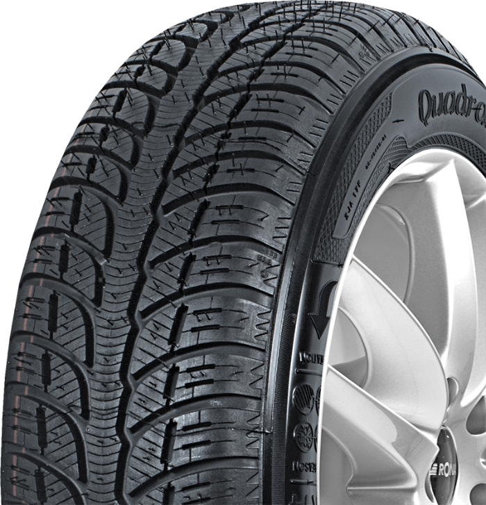 Le Kleber Quadraxer est un pneumatique toutes saisons de classe moyenne qui fait ses preuves aussi bien en hiver qu'en été. Le modèle a été doté d'une bande de roulement directionnelle qui évacue efficacement l'eau et la boue. Ses larges rainures contribuent à l'évacuation rapide des liquides et le pneumatique devient vite sec.