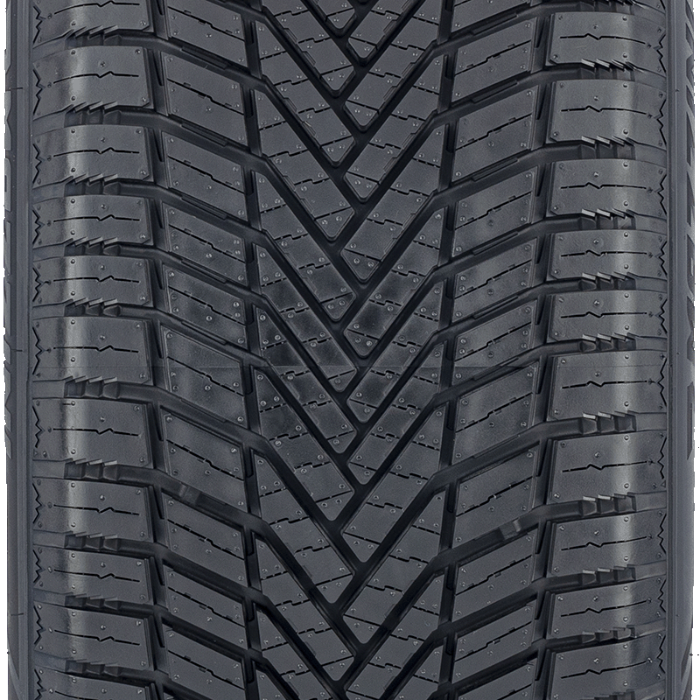 Avec son système de rainures et lamelles, la bande de roulement garantit une très bonne adhérence à la fois sur neige et sur des surfaces humides ou sèches. Elle offre aussi une grande stabilité lorsque vous faites de la vitesse, ce qui se traduit par de bonnes sensations de conduite et une traction adéquate. Ceci grâce au motif directionnel en forme de "V".