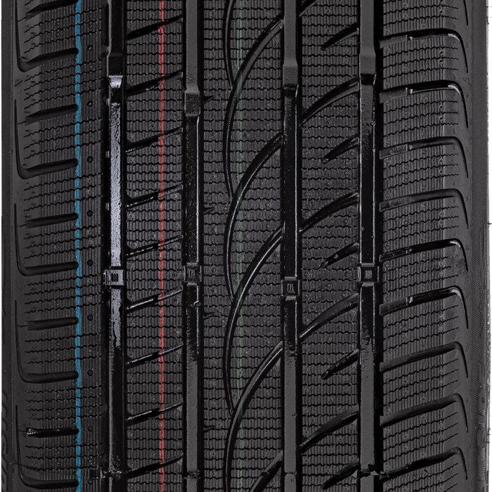 Il porte le symbole 3PMSF (Three-Peak Mountain Snow Flake), qui est attribué après que le modèle en question a été testé de manière approfondie pour l'adhérence sur la neige.